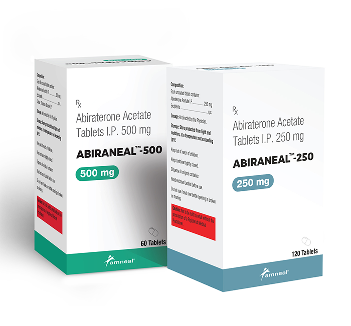 PACK SIZE ABIRANEAL-250 – HDPE container pack of 120 tablets. ABIRANEAL-500 – HDPE container pack of 60 tablets. Before prescribing, please consult full prescribing information available from Amneal Healthcare Private Limited (Formerly known as Amneal Biologics Private Limited) Regd. Office: 9th Floor, 901 to 905, Iscon Elegance, Circle P, S.G. Highway, Ahmedabad – 380015.