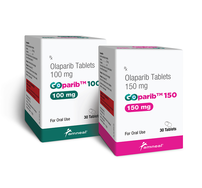 INDICATIONS Ovarian cancer: • For the maintenance treatment of adult patients with recurrent epithelial ovarian, fallopian tube, or primary peritoneal cancer, who are in a complete or partial response to platinum-based chemotherapy. • For the treatment of adult patients with deleterious or suspected deleterious germline BRCA-mutated (gBRCAm) advanced ovarian cancer who have been treated with three or more prior lines of chemotherapy. • Olaparib in combination with bevacizumab is indicated for the Maintenance treatment of adult patients with advanced high-grade epithelial ovarian, fallopian tube, or primary peritoneal cancer who are in response (Complete response or partial response) to first-line platinum-based chemotherapy with bevacizumab. Breast Cancer: • In patients with deleterious or suspected deleterious gBRCAm, human epidermal growth factor receptor 2 (HER2)-negative metastatic breast cancer who have previously been treated with chemotherapy in the neoadjuvant, adjuvant, or metastatic setting. Patients with hormone receptor (HR)-positive breast cancer should have been treated with a prior endocrine therapy or be considered inappropriate for endocrine treatment. Pancreatic Cancer: • Olaparib is indicated as monotherapy for the Maintenance treatment of adult patients with germline BRCA-mutated metastatic adenocarcinoma of the pancreas whose disease has not progressed on first-line platinum-based chemotherapy. Prostate Cancer: • Olaparib is indicated as monotherapy for the treatment of adult patients with metastatic castration-resistant prostate cancer and homologous recombination repair gene mutations (germline and/or somatic) who have progressed following a prior new hormonal agent.